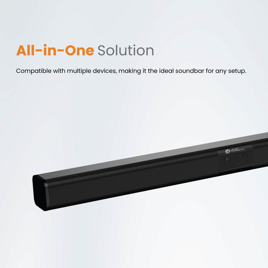 The soundbar's 1,800mAh battery allows for cordless use, though Corsceca doesn't list exact playback hours — actual runtime will depend on volume and playback mode.